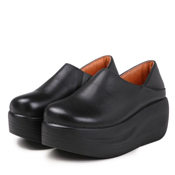 S050 Round toe retro original handmade women's shoes thick-soled wedges with the first layer of leather casual single Images |