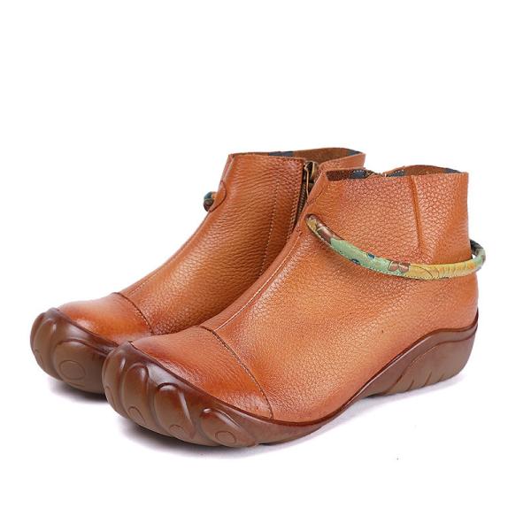 S314 Autumn/Winter Retro Literary Leather Short Boots Ethnic Style Flat Round Toe Cowhide Women'S Shoes Images |