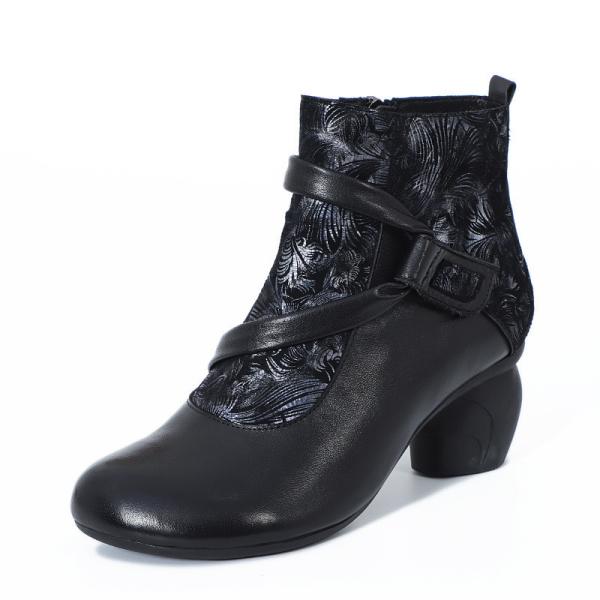 HZM032 Retro printed leather women's shoes autumn and winter new ethnic style thick heel boots children's niche retro le Images |